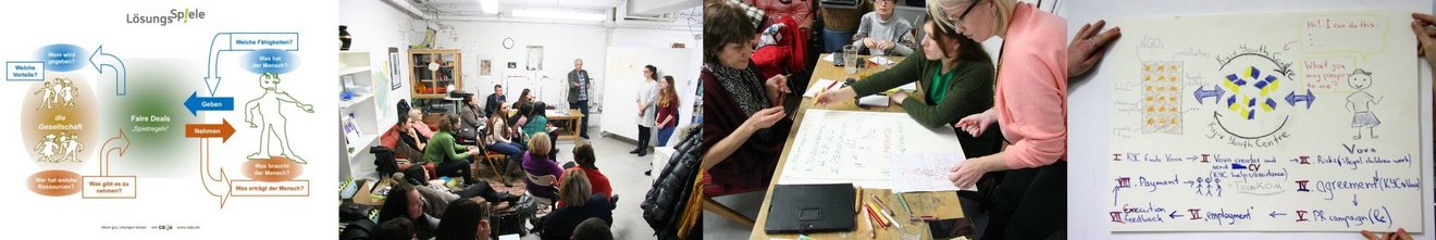 Die Methodik der "LösungsSpiele" ist praxisnah und orientiert sich an den fachlichen Alltagssituationen der Teilnehmer*innen. In Kleingruppen wird mit Papier und Stift überlegt, welche Fähigkeiten und welche Belastbarkeit besondere Zielgruppen haben. Spielregeln werden diskutiert, neue Kooperationsformen und Handlungsrahmen konkretisiert, die Geben und Nehmen ausbalancieren können.